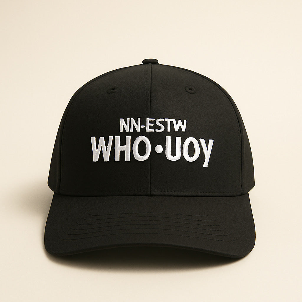 Flip the perspective. The ZAYNO “WHO•UOY” Cap turns heads with its bold, mirrored statement — a sleek design for those who embrace being unapologetically unique. The crisp white embroidery on a jet-black structured base delivers maximum contrast and impact, making this cap a conversation starter.